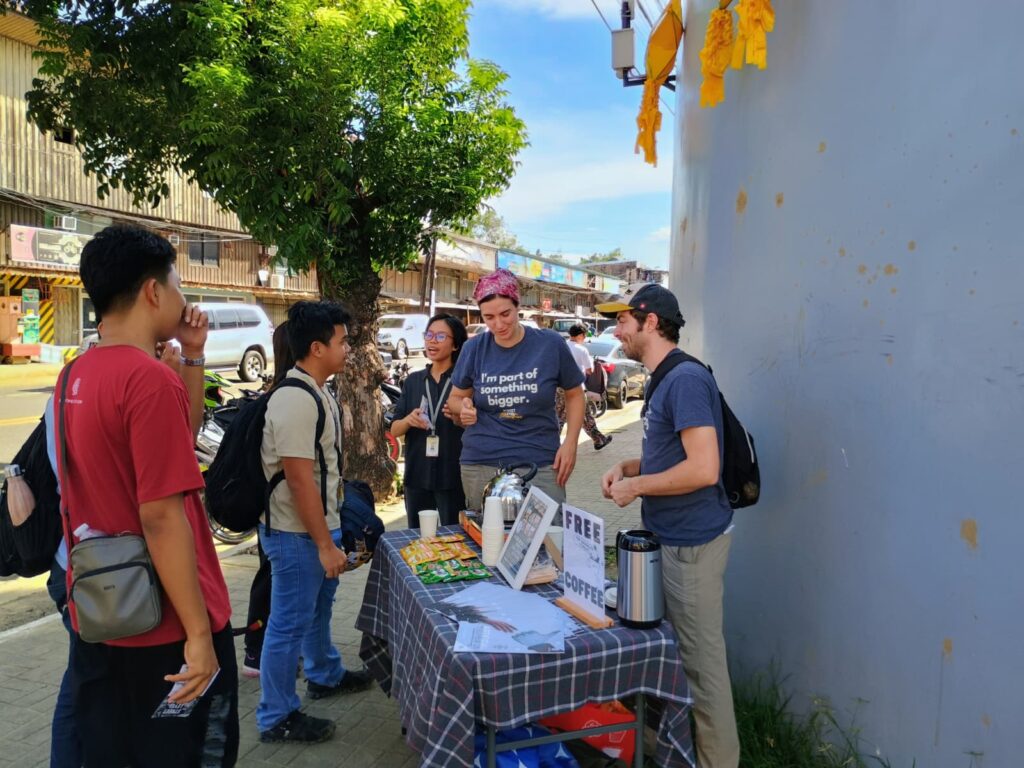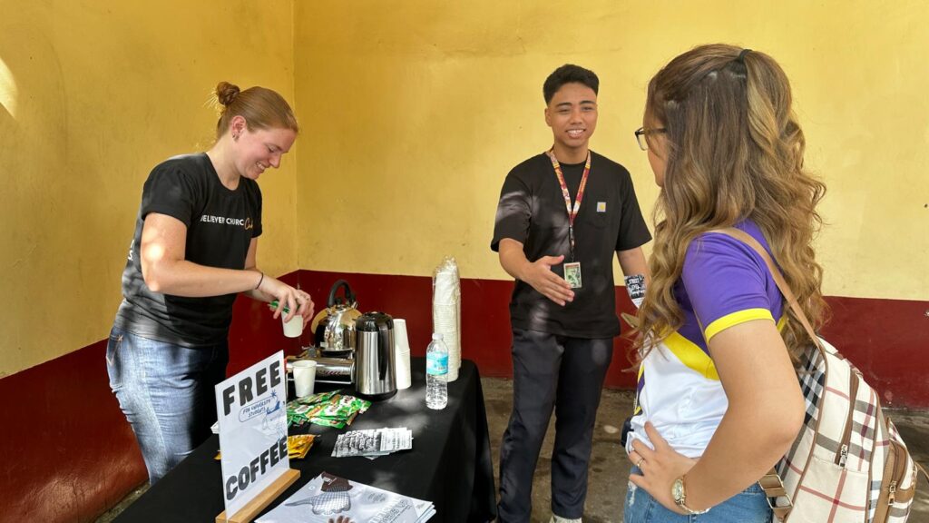 Earlier this week we were supposed to holding our second MTI class on Bantayan Island, unfortunately due to weather we were unable to travel on the ferry to host the class. We quickly pivoted to plan to use our time in Cebu City for outreaches and uncanceled Street Level for Wednesday night. To promote Street Level and Church, two groups with some of the Street Level members went out for free coffee giveaways at a few universities and to go pass out fliers. We invited 100s of people that we came across and made a few connections.