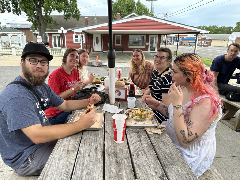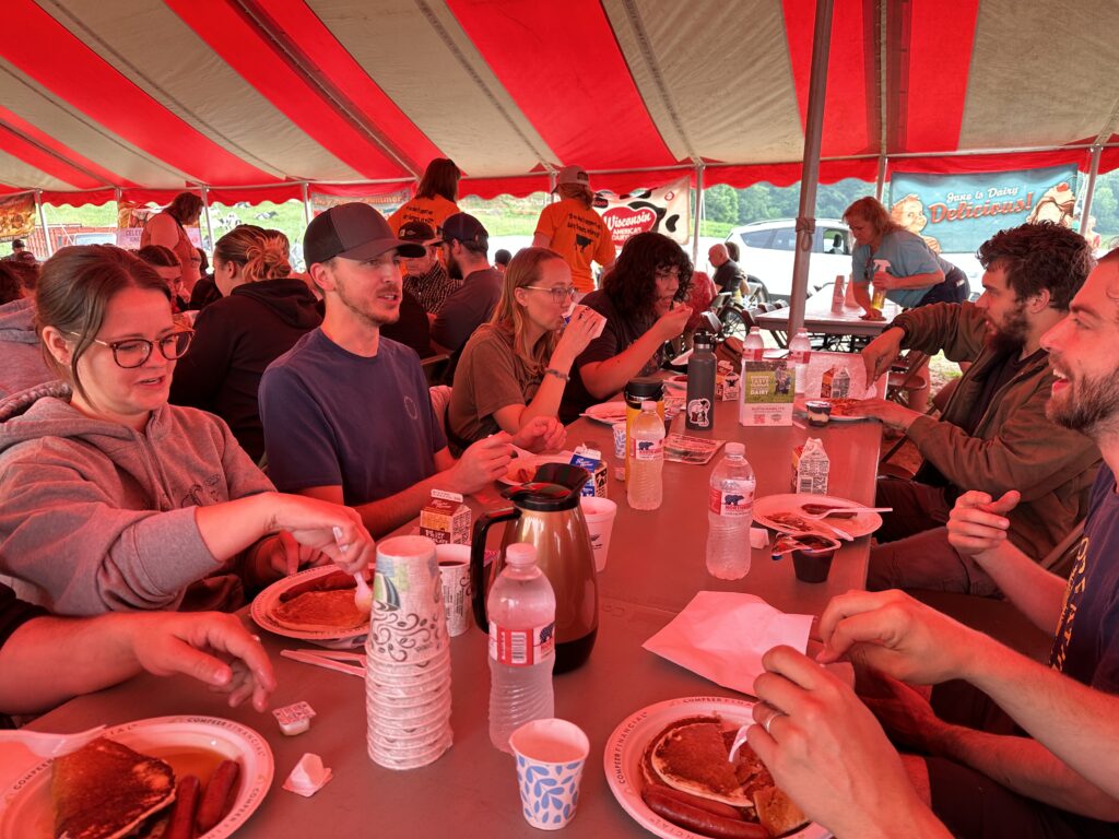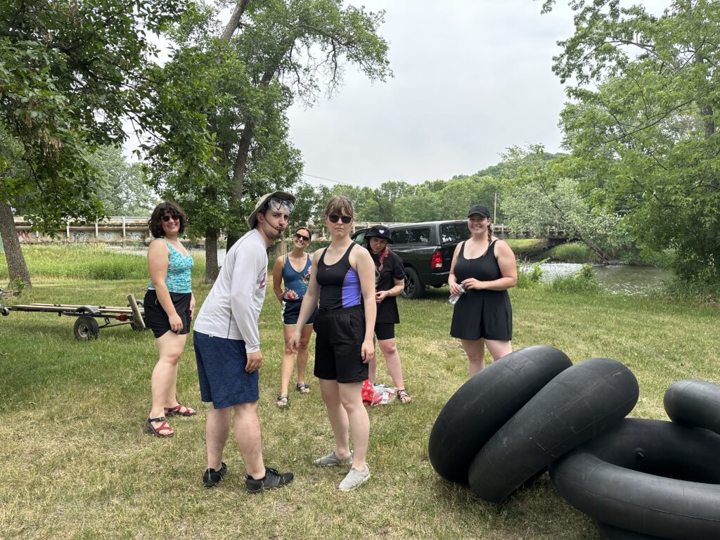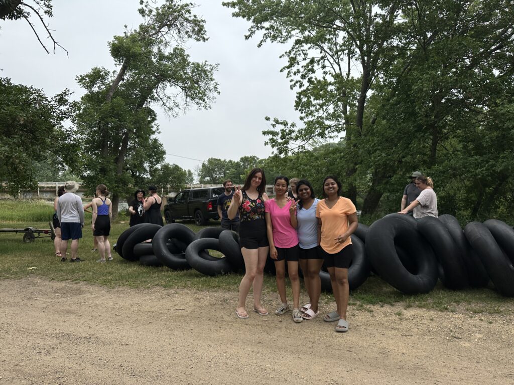 On Saturday, we went to the June Dairy breakfast, which was held literally “next door” to the campground. This was a 1st time experience for many in the group, including our international students from Nepal and India. After breakfast, we hit the Red Cedar River for a large group tube ride (float) down the river.