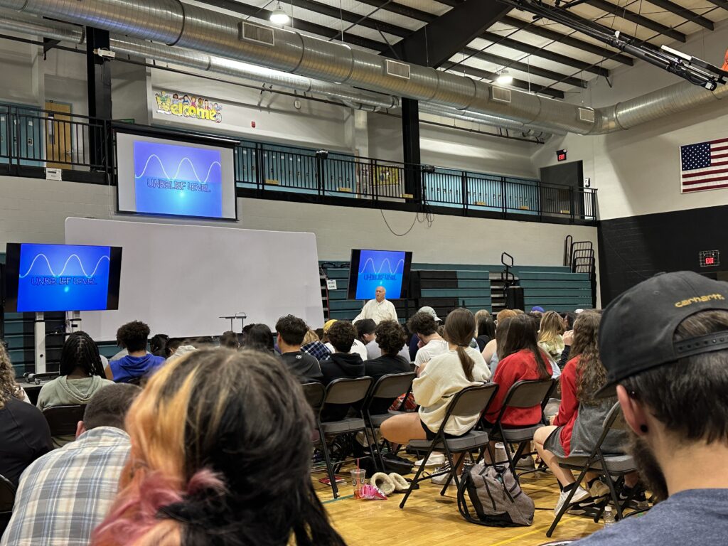 On Friday night, we played volleyball, snacked, cooked over the fire, listened to one of our staff member’s (Abby) testimony, and talked missions for 2023-2024.