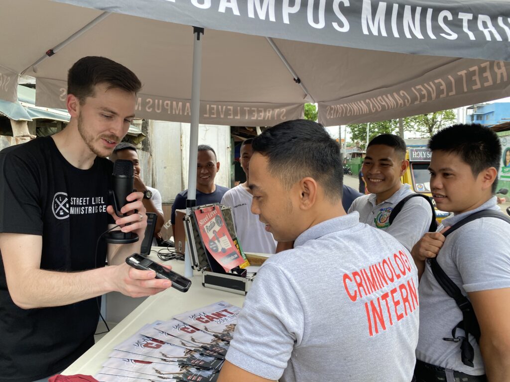 Abby, Brittany and Pete were able to do a live radio broadcast just outside the UV campus in Toledo. We met many students and gave away T-shirts, WOTS magazines and flyers for Street Level. Some of the students seemed to have some real interest in Street Level so please be praying that we start to see some of them show up to the weekly meetings.