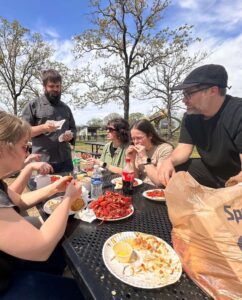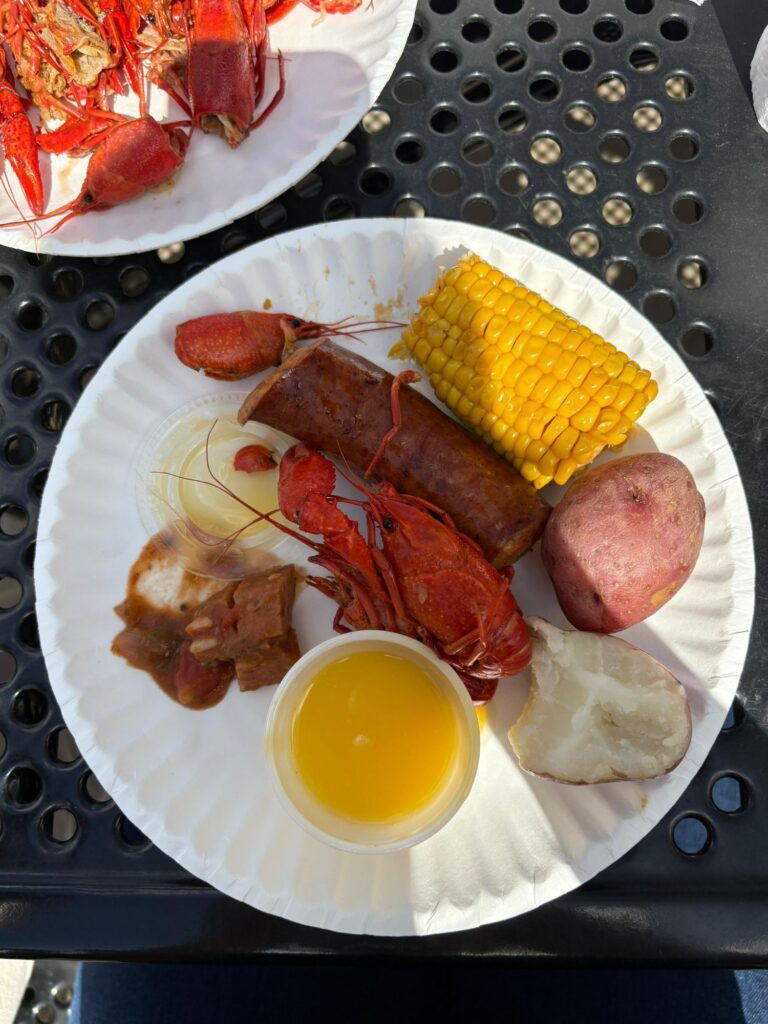 Our first full day in Jackson, MS was started after a good night’s sleep in the Mission First dorms. The beautiful 70+ degree weather greeted us! We went to church and found some coffee in the morning. The next stop after that was crawfish, potatoes, corn, sausage, etc!! We found picnic tables in a park as many of us tried crawfish for the first time. It was a good day!